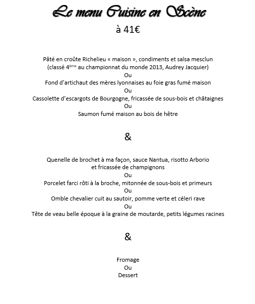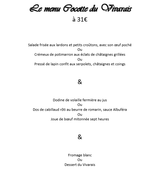 Disponible uniquement pour le déjeuner du mardi au vendredi (sauf jour férié) Formule 2 choix à 18€. Formule 3 choix à 23€